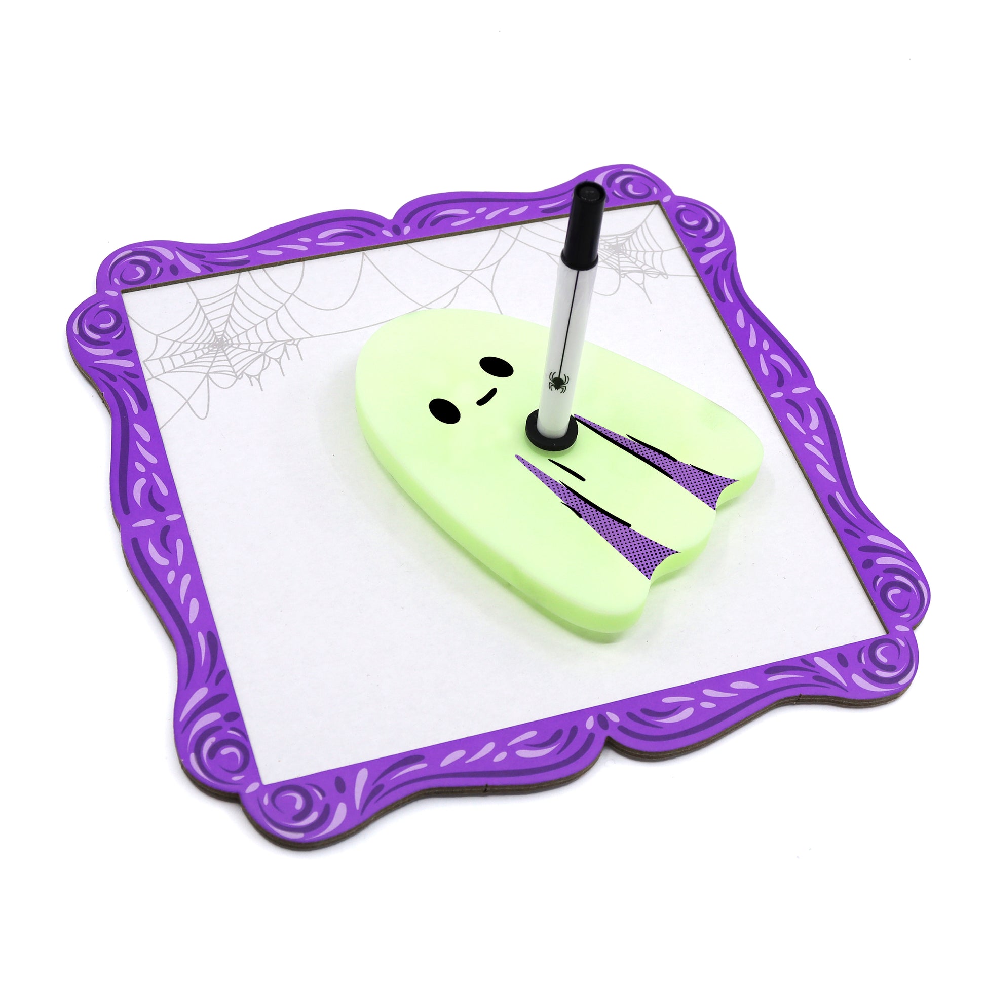 It’s like a spooky, kooky Pictionary. Everyone places their hands on the ghost doodle board and closes their eyes. One player (the ghost) draws a picture. Can you guess who the ghost was and what they were trying to draw? Includes spooky music and voice over app to create a ghostly atmos. Perfect for a Halloween party