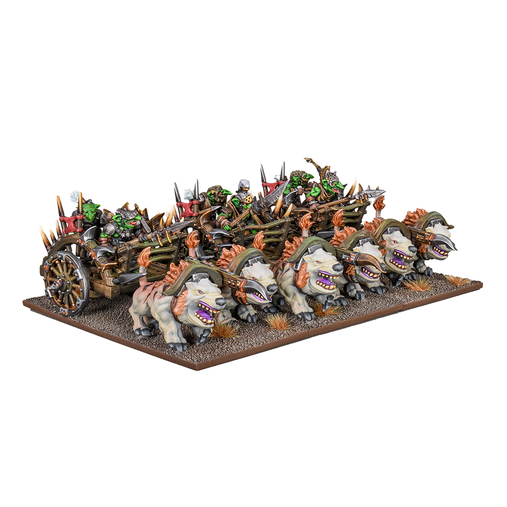 Although hastily and clumsily built, Goblins’ contraptions are not to be underestimated. When yoked to a pair of ferocious mawbeasts a goblin chariot acts as an ideal skirmisher, harrying foes with bow fire and snapping teeth for any who get too close. Mincers on the other hand, are little more than a sets of whirring blades and drills, forced into enemy lines on a temperamental steam engine.