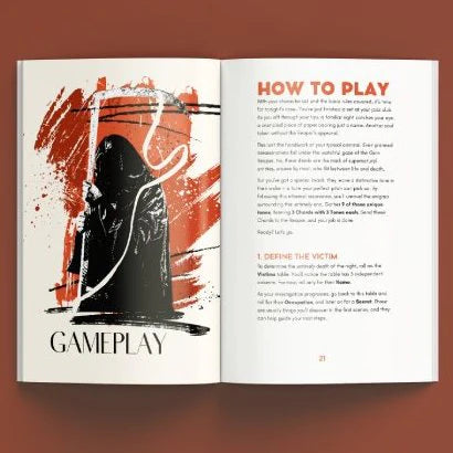Midnight Melodies is a solo RPG in which you play as a jazz pianist who discovers they're immune to the touch of the Grim Reaper. Instead of claiming your life, the Reaper recruits you for the Department of Unauthorized Deaths. Each night, after your performance at the club, you find a scrap of paper in your tip jar - the name of someone taken without consent. You must unravel the mystery of these unauthorized deaths, using your newfound supernatural talents, and perform an eerie harmony to report your findings to the Reaper before sunrise.