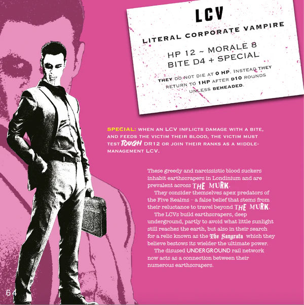 Aside from that lovely darkness, there will be vibrant pinks and yellows, all using the same colour palette that appeared on the Sex Pistols' debut album, Never Mind The Bollocks. There are over 90 pages of rules and eclectic artwork using photos taken by the author, commissioned art and repurposed stock imagery in the spirit of zines. Inner pages are 90gsm silk to for durability and gorgeous colourful reproduction.