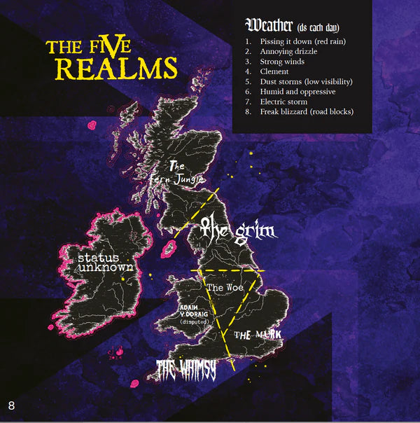 The war ended when the bombs ran out. From the ashes emerged theUn-united Kingdom, a small island where some weird sh*t crept in through rips in the cosmos created by a thousand nuclear explosions. The Un-united Kingdom comprises of five realms, each distinct and with nightmares that constantly plague the few remaining humans that live there.