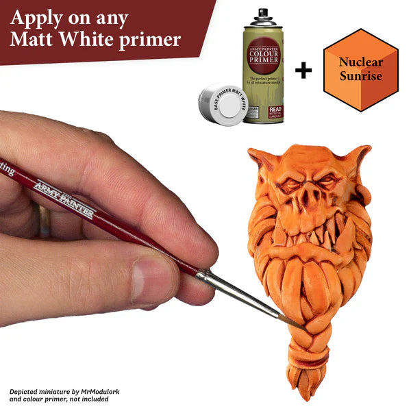Speedpaint is truly a one-coat painting solution. Simply apply one rich coat of Speedpaint directly over a primed miniature and you are done! The Speedpaint will leave that part of the model with both intense shading, vibrant colour, and a highlight effect in one application.