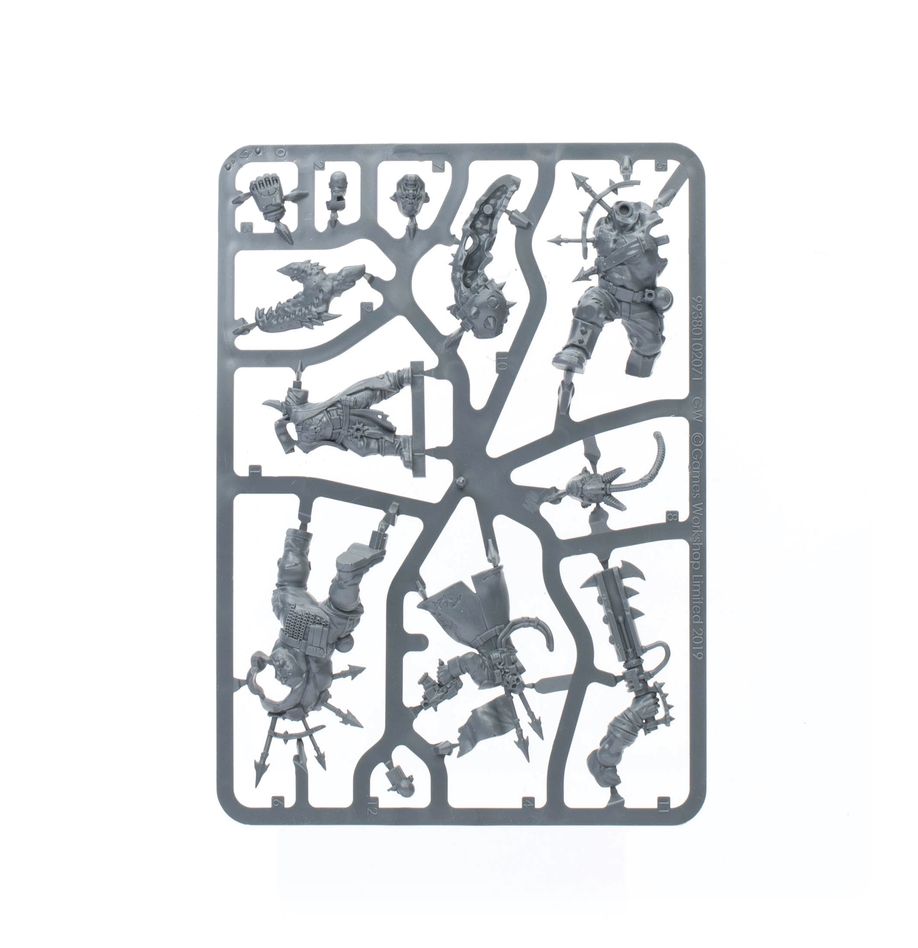 This kit comprises 12 plastic components, 1x Citadel 32mm Round Slotta Base, and 1x Citadel 40mm Round Hex Hole Base. These push-fit miniatures can be assembled without glue and are supplied unpainted
