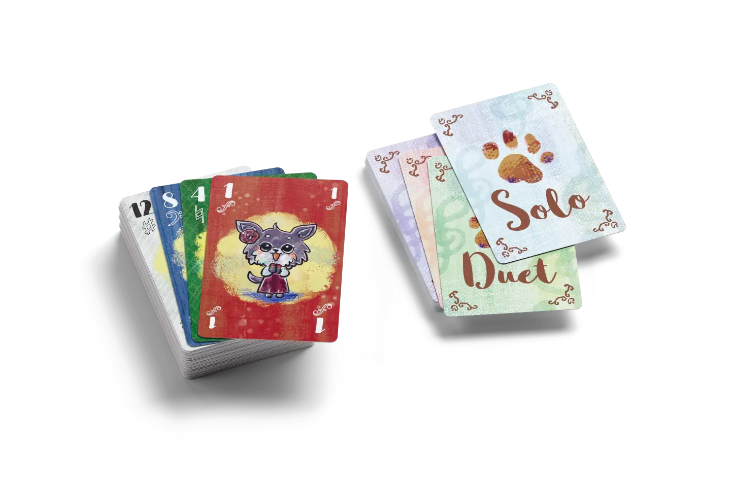 In Vivo, each round starts by revealing a harmony type (Solo, Duet, Trio, Quartet). The harmony determines how many suits must be played in the trick—not being able to is considered playing “off-harmony,” making that player ineligible for points.