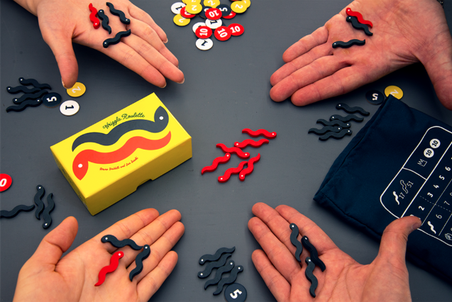 Wriggle Roulette is a tabletop game blending luck and strategy. Players take turns reaching into a bag filled with eel and snake-shaped wooden pieces, trying to pull out as many eels as possible. But beware—if the number of snakes grabbed by all players exceeds the limit, a "snake outbreak" occurs, and the player who grabbed the most pieces loses all of their eels. You want to grab more than everyone else to score big, but a snake outbreak would be devastating...